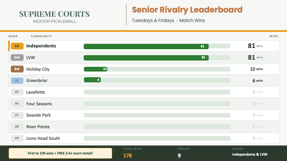Today could be the day when a group takes the lead and earns their FREE COURT RENTAL!